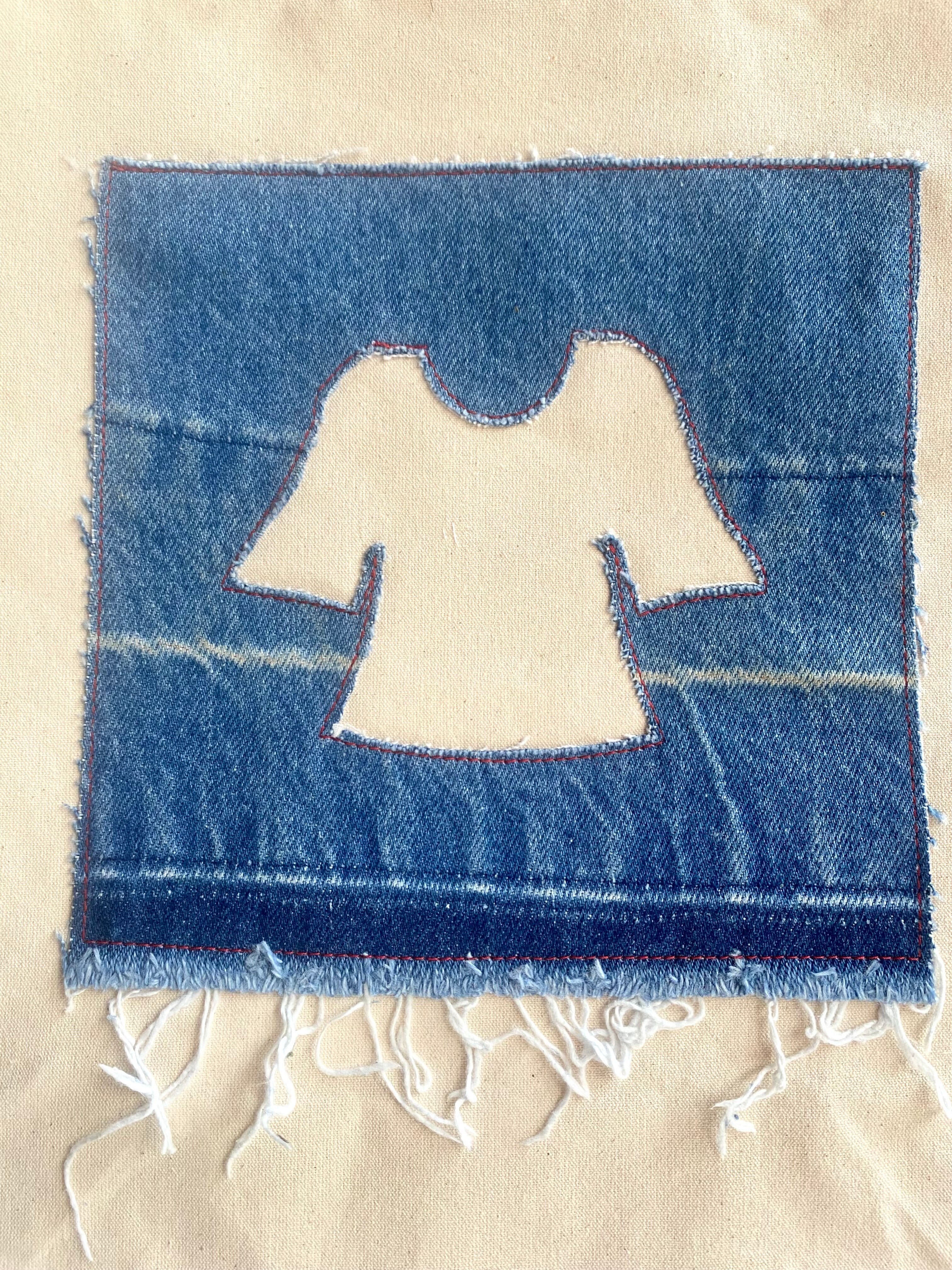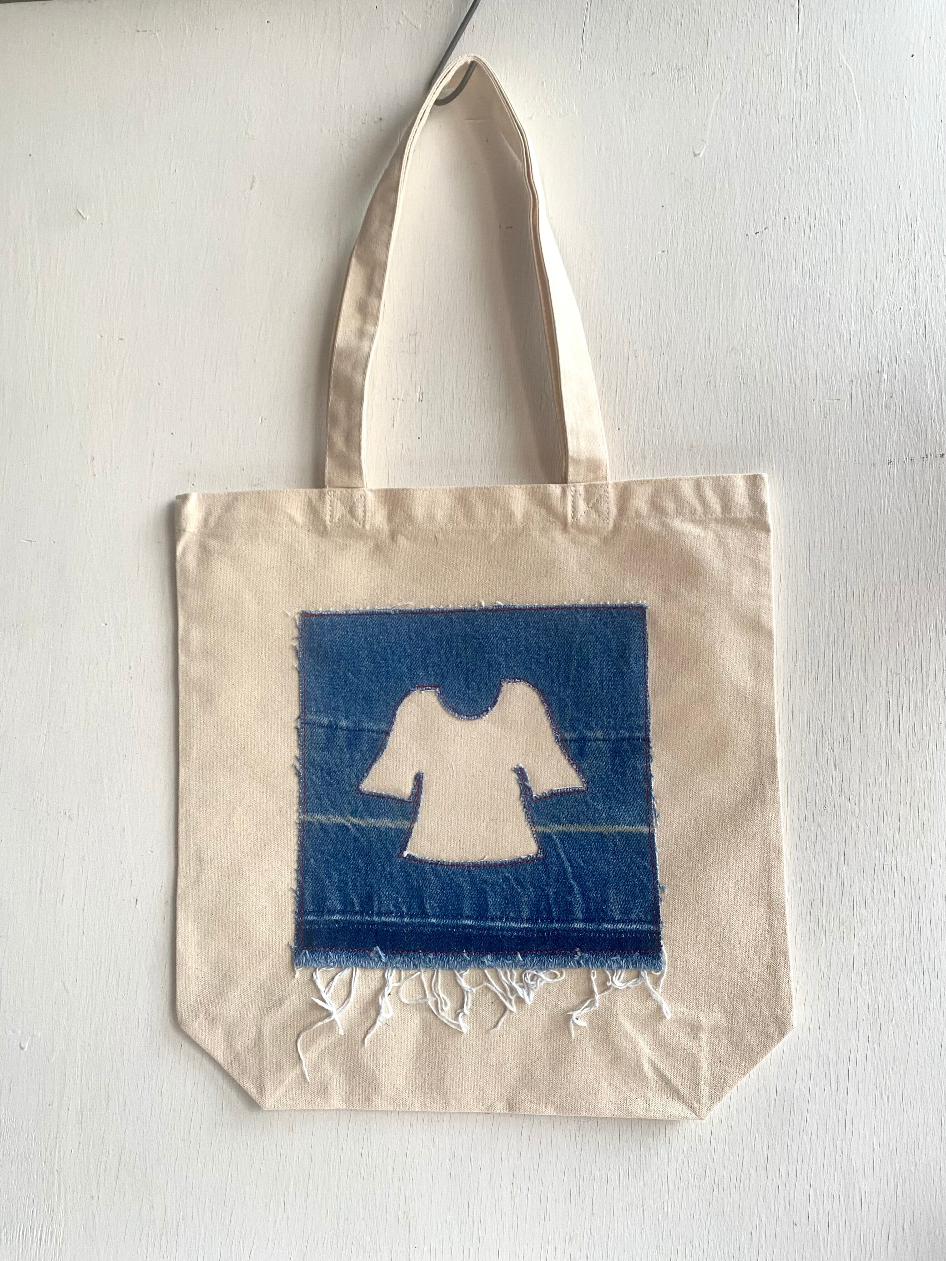 既成の生成りのトートにヴィンテージの様々なファブリックを組み合わせたドローイングシリーズのトートバッグ。