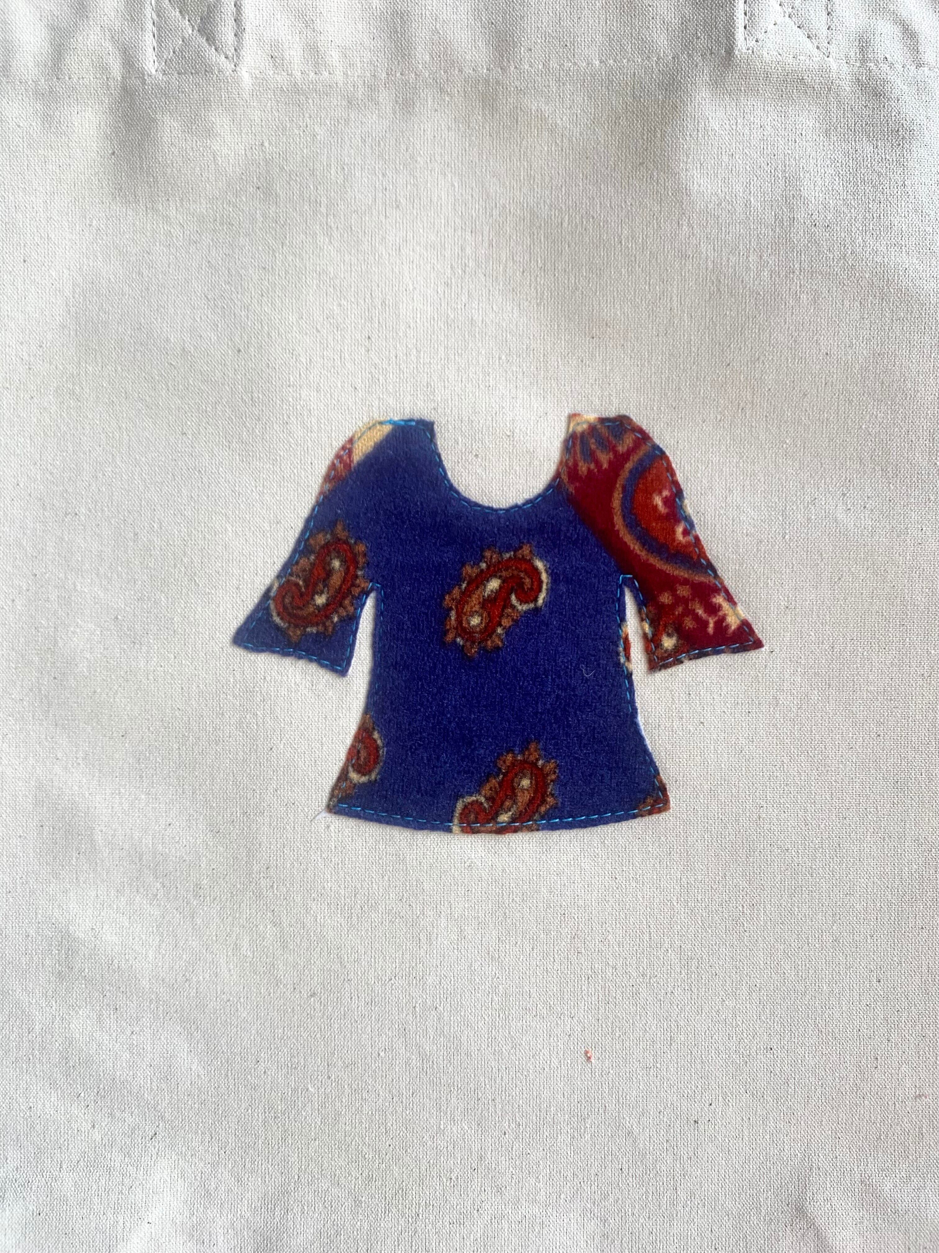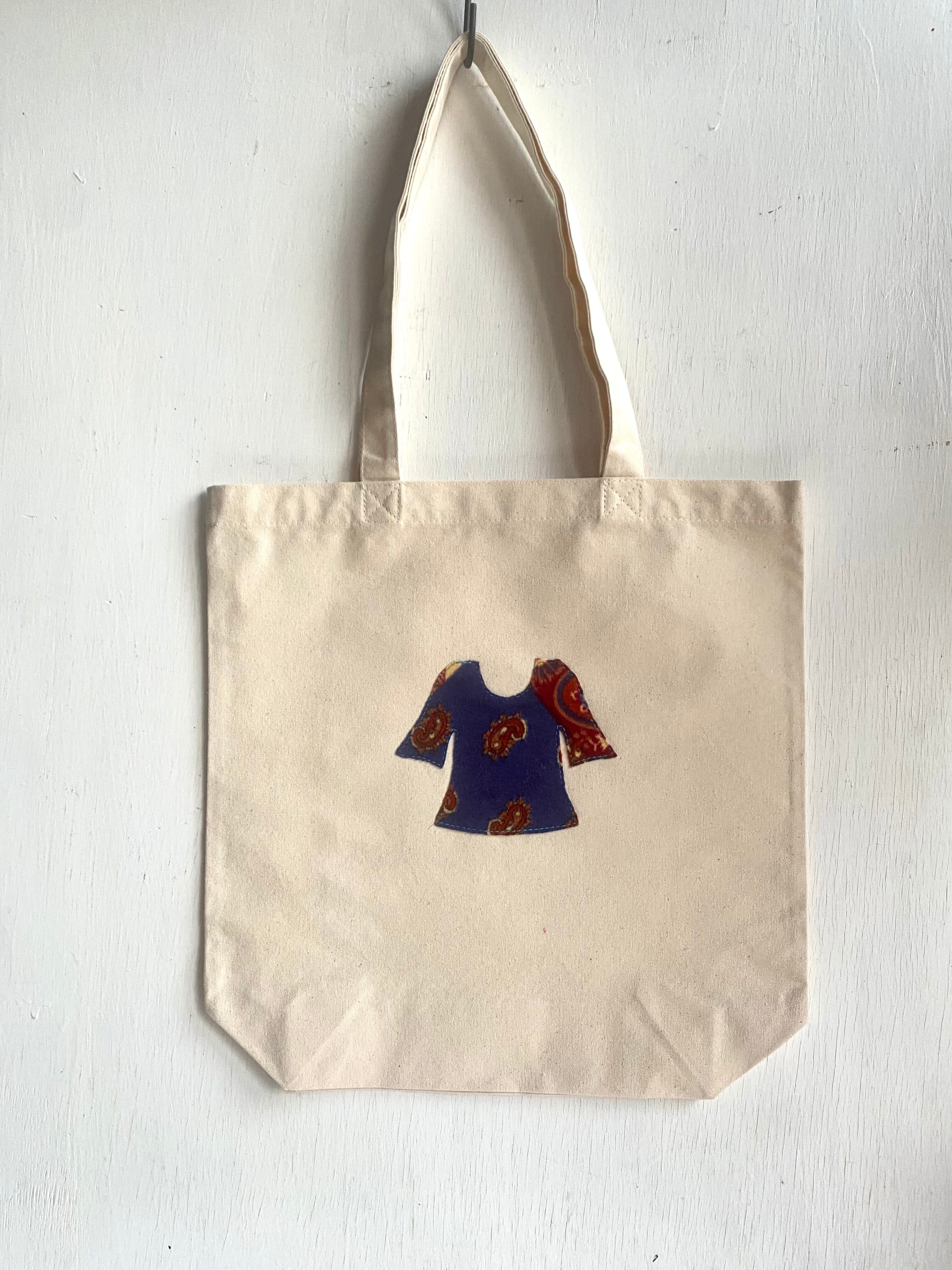 既成の生成りのトートにヴィンテージの様々なファブリックを組み合わせたドローイングシリーズのトートバッグ。