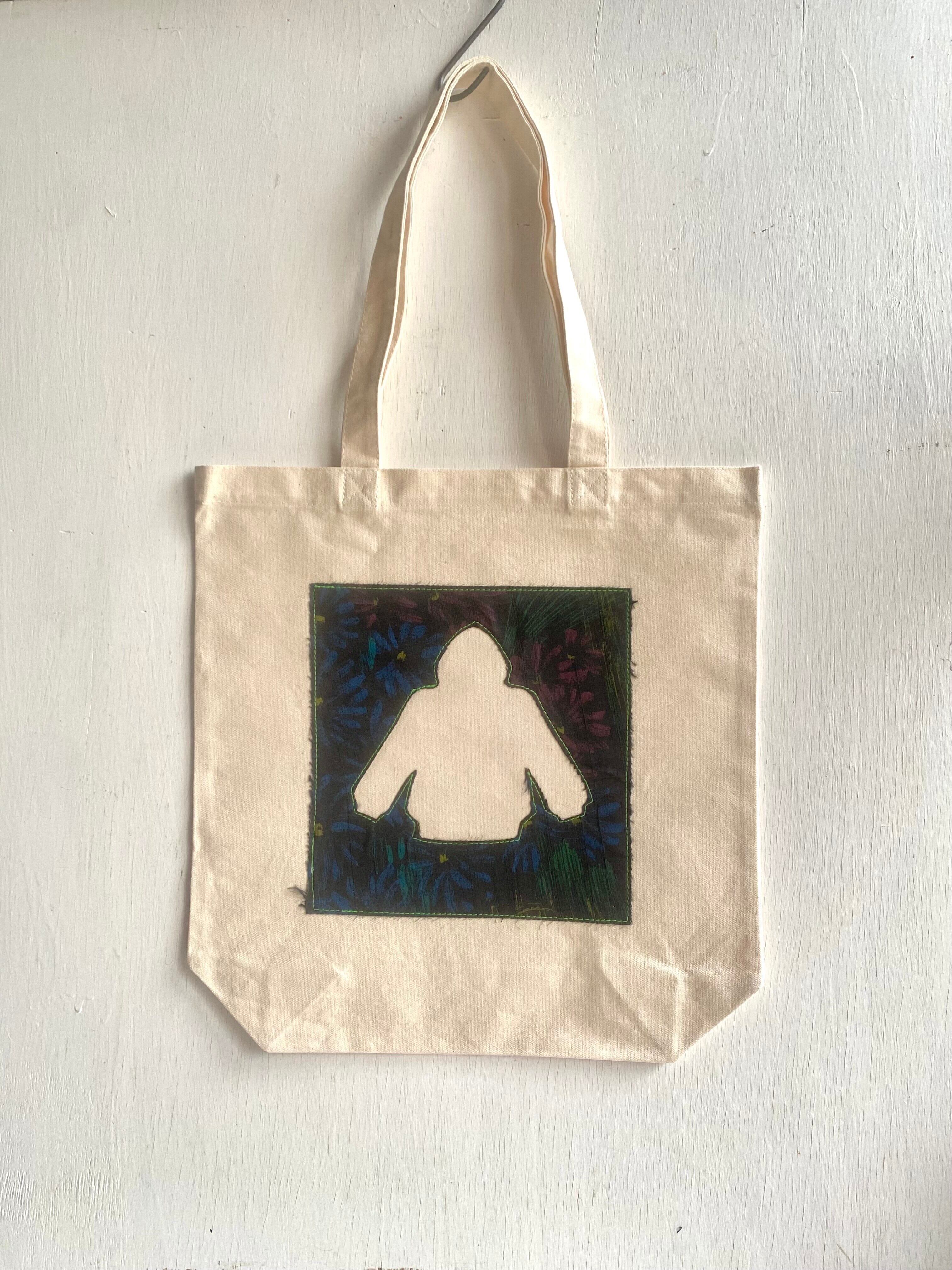 既成の生成りのトートにヴィンテージの様々なファブリックを組み合わせたドローイングシリーズのトートバッグ。