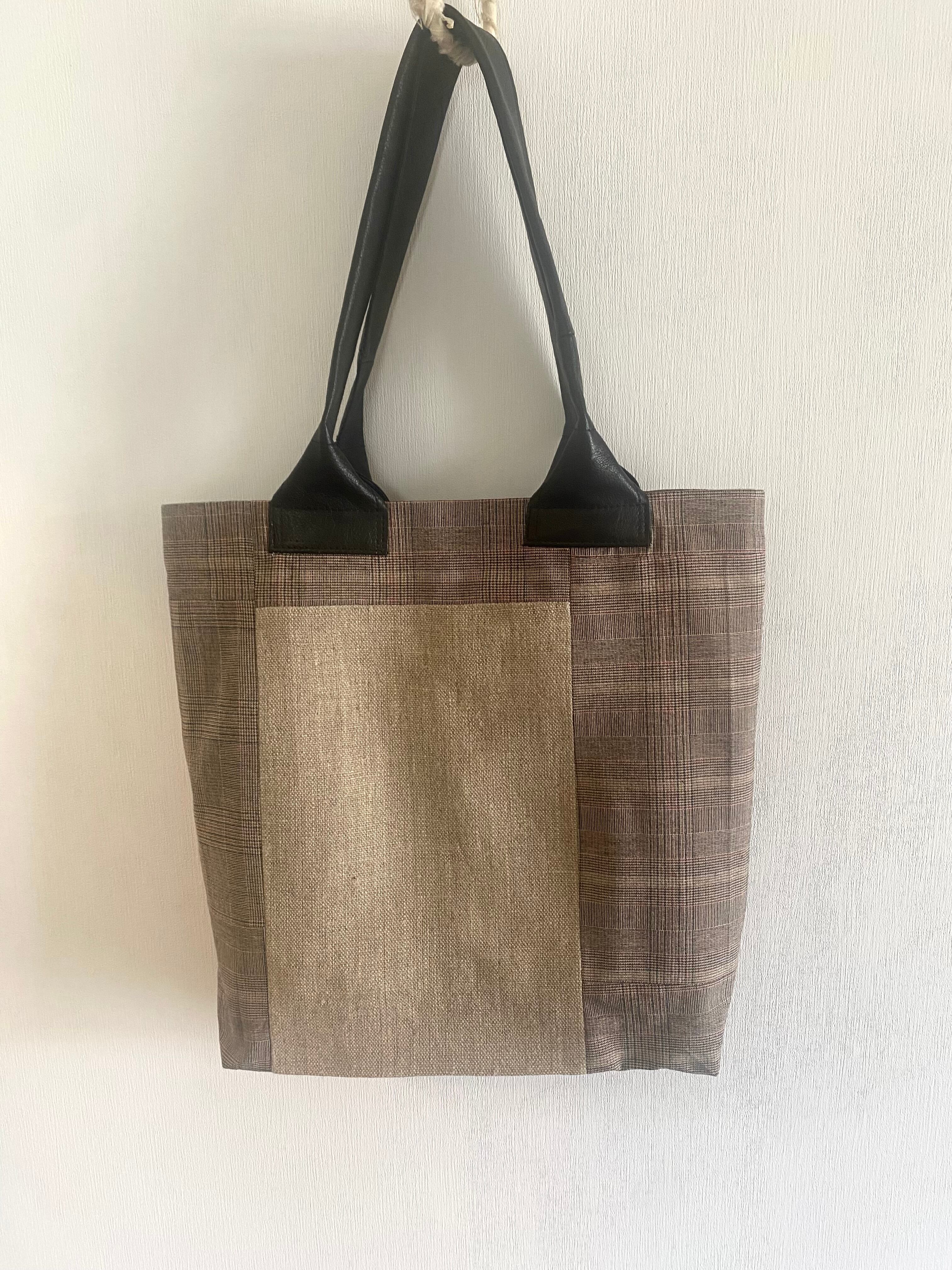 ビンテージファブリックをパッチワークしたトートバッグ。
