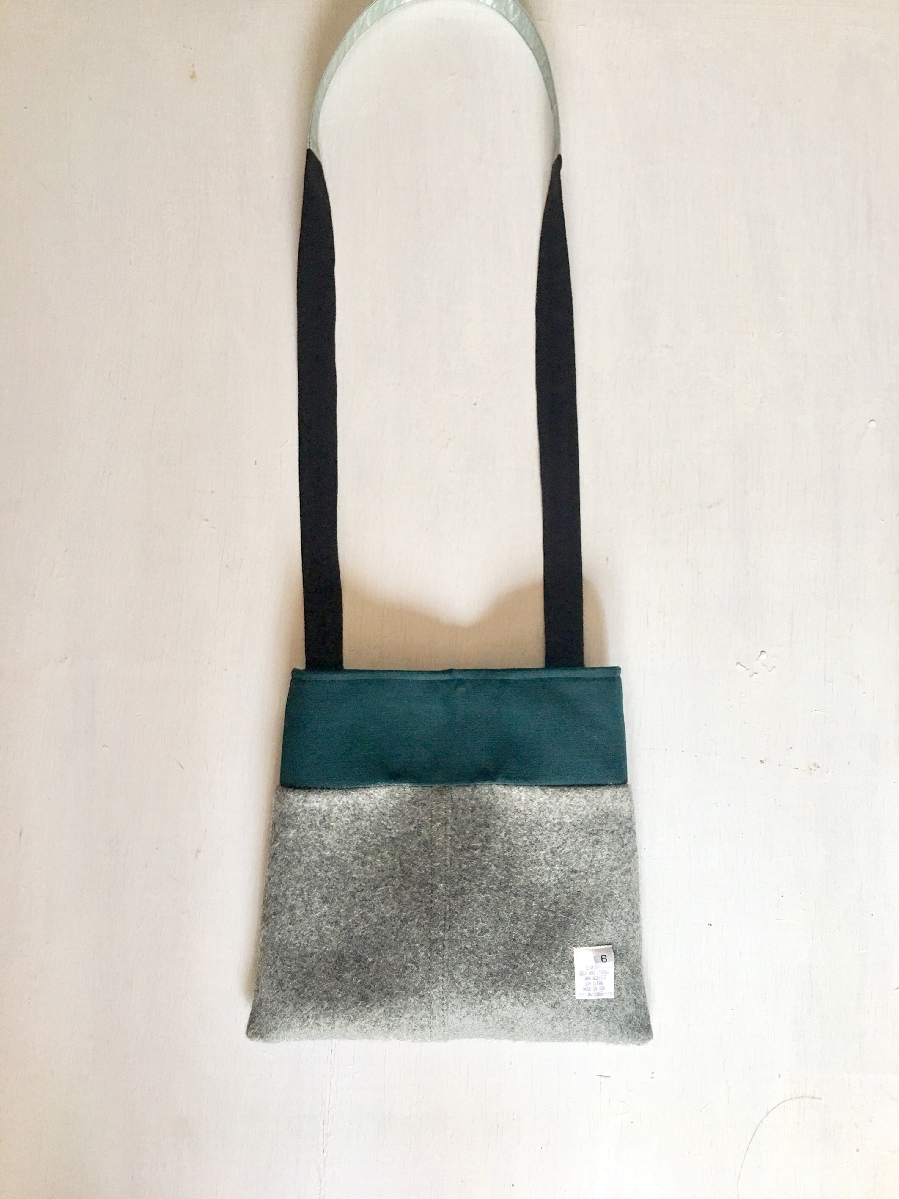 ヴィンテージの二種のウール素材のバイカラーのサコッシュです。