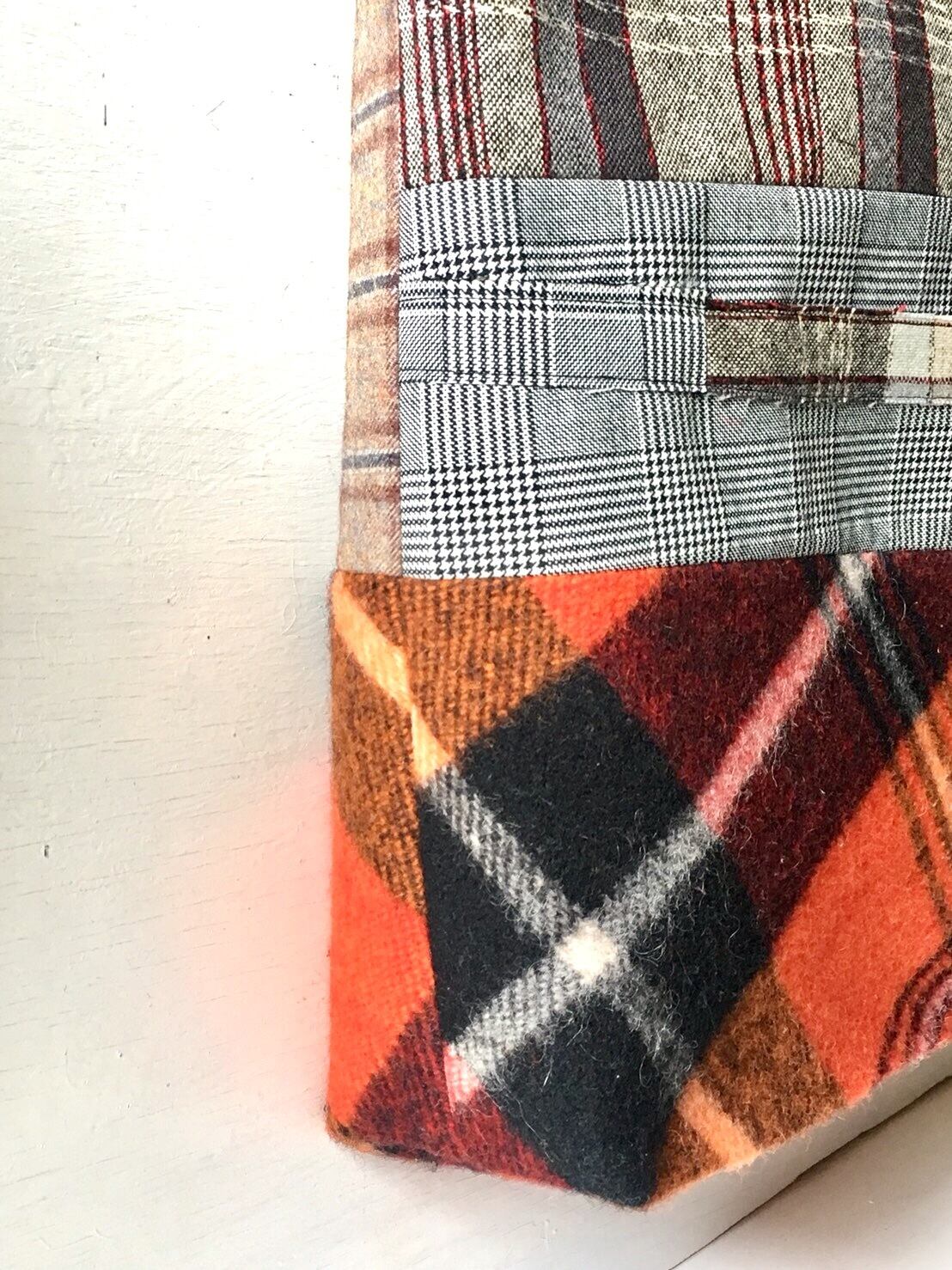 タータンチェック、ブロックチェック、千鳥格子で整然と構成し地の目をずらし程よいクセも持ち合わせています。ウール素材で秋冬にぴったりのバッグです。ウール素材の暖かみがあるバッグ。