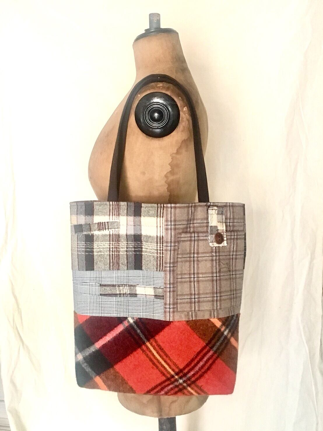 ヴィンテージの様々なチェック柄ばかりを集めたマルチカラーのトートバッグです。