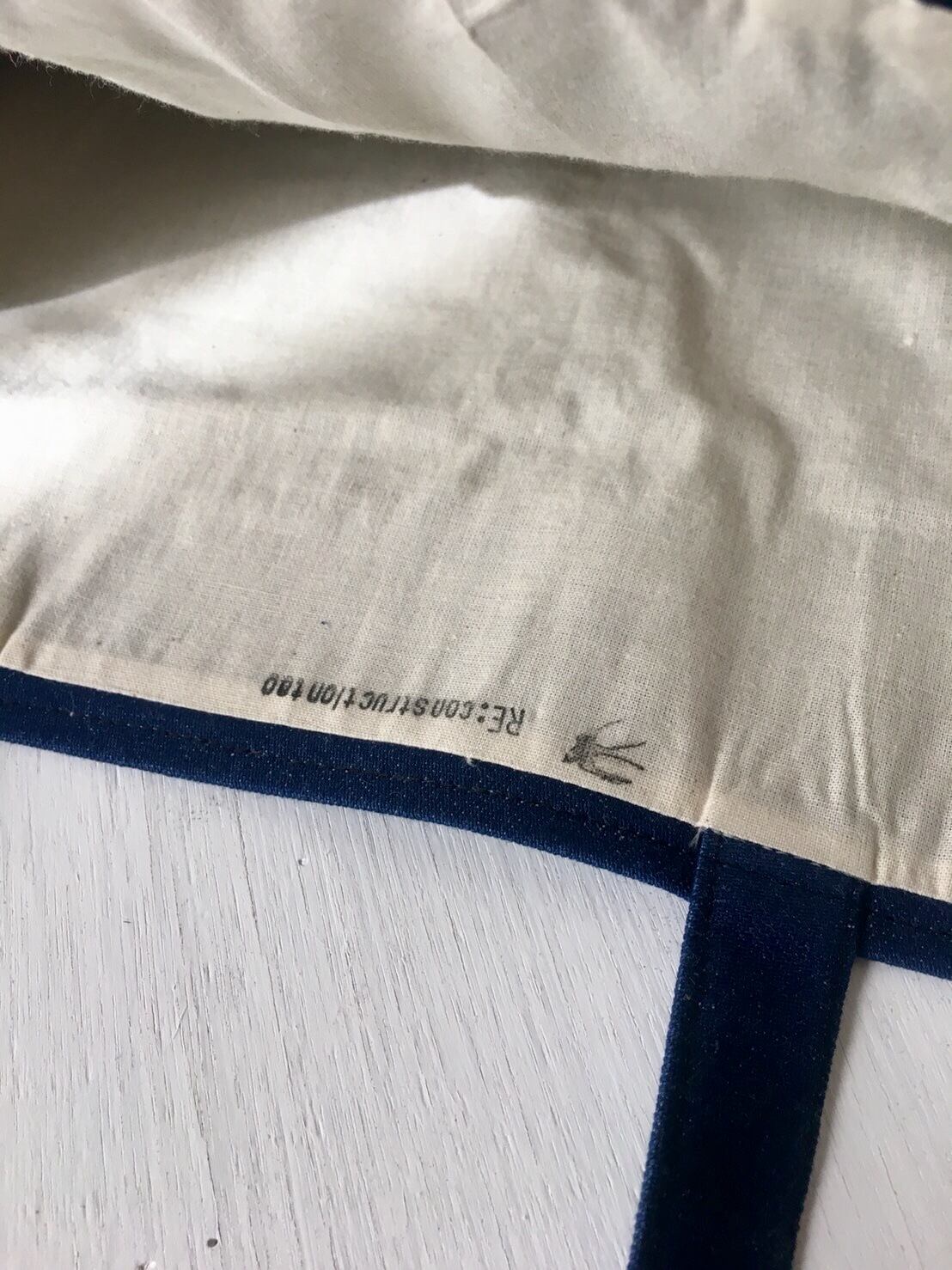 状態はヴィンテージアイテムを解体したファブリックで再構築されています部分につきましては経年のダメージはそれなりにあります。アタリ、シミ、汚れ、針穴などもデザインの一部と捉えたお品になります。
