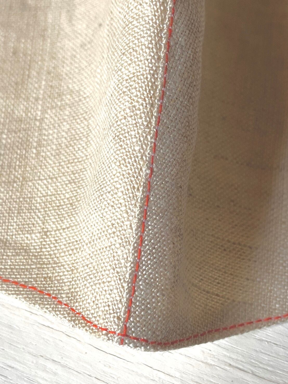 ベースとなるリネン生地は肌触りの良いリネンを使用し、裏地にはシーツ等に使われる素材を使用しています。アクセントとなるスタンプもフランスビンテージのもの。数種類ございます。裏地は新品の生地を使用しています。