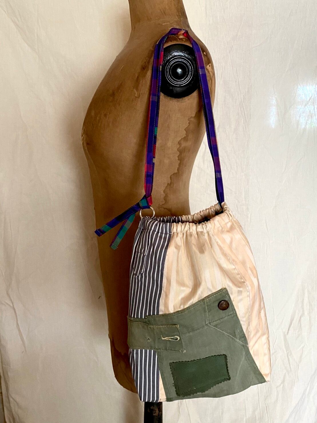 ヴィンテージのブロード(所謂、シャツ地)数種類パッチワークしたトートバッグです。