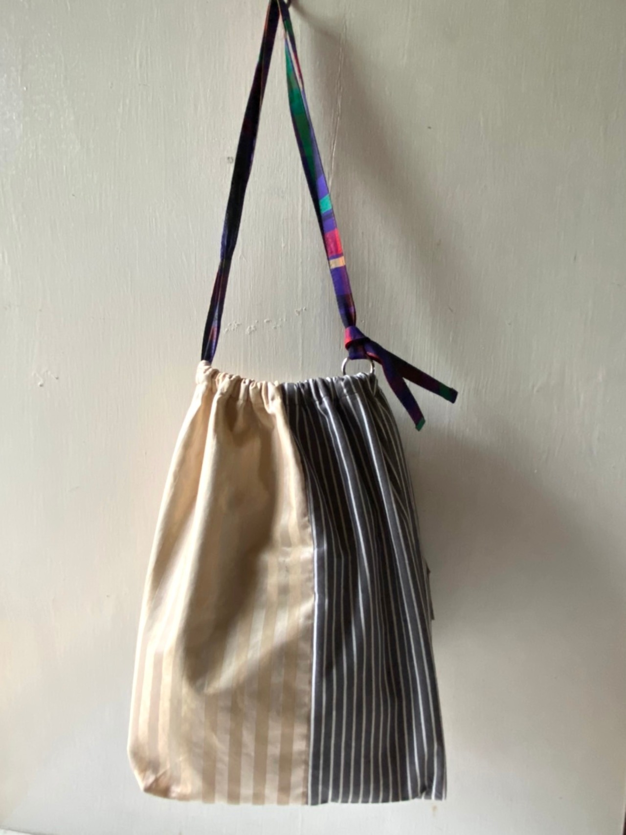 shoulderbag /ヴィンテージ ストライプの巾着ショルダーバッグ ■tf-364