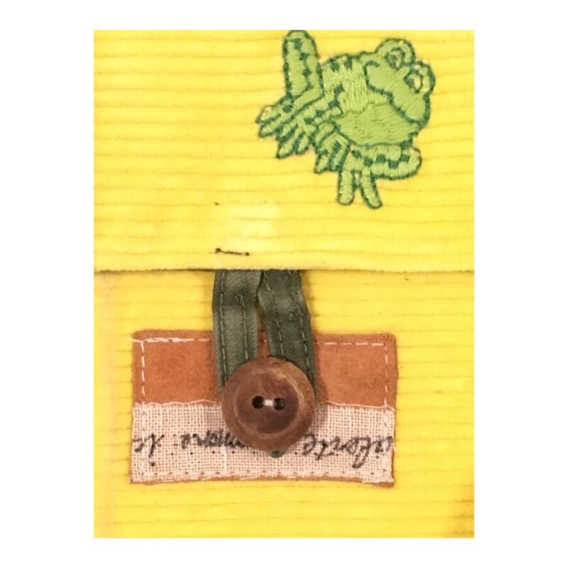 ヴィンテージファブリック故の味や、ユニークで可愛らしい表情のカエルの刺繍はそのまま生かし、アクセントになるように仕上げました。