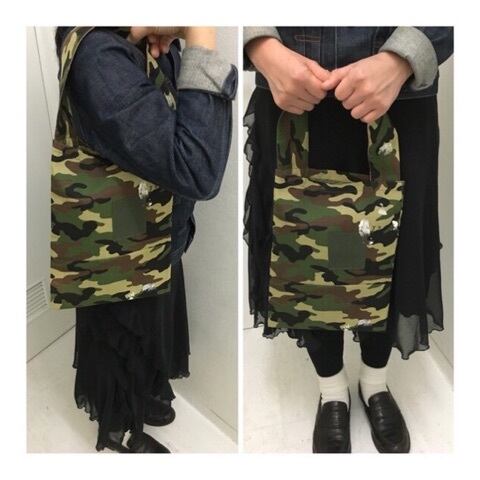 未使用のカモフラ生地をパッチワークして作成したエコバッグです。