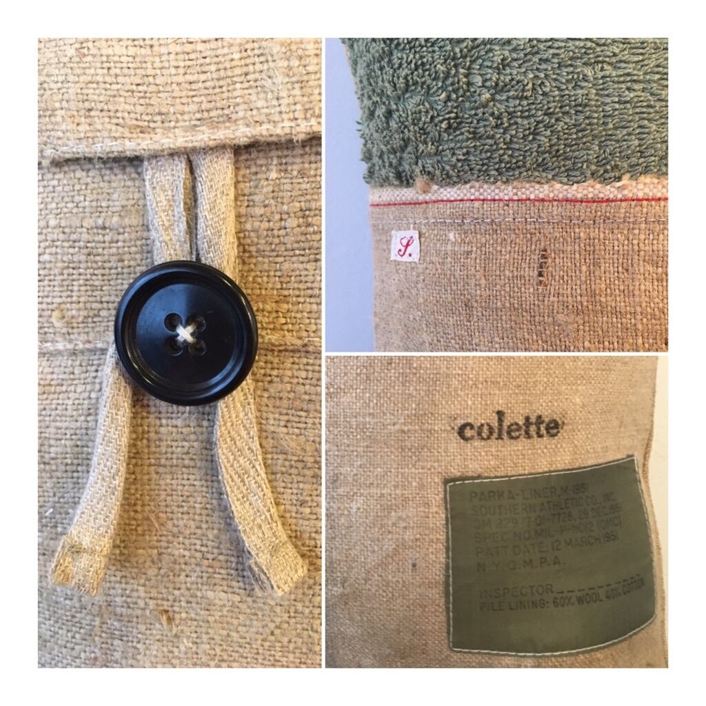 状態はヴィンテージアイテムを解体したファブリックで再構築されています部分につきましては経年のダメージはそれなりにあります。シミ、汚れ、針穴などもデザインの一部と捉えたお品になります。