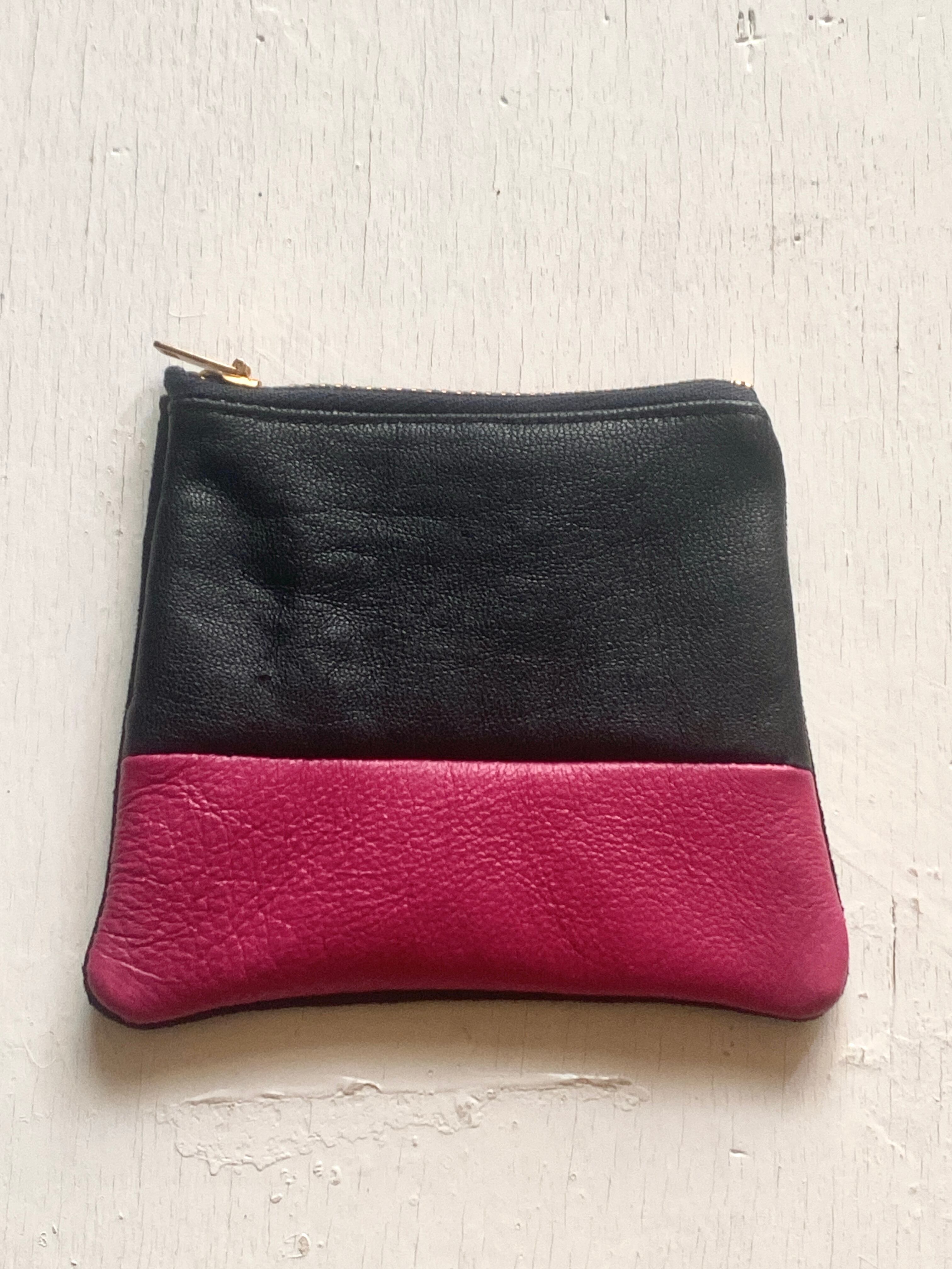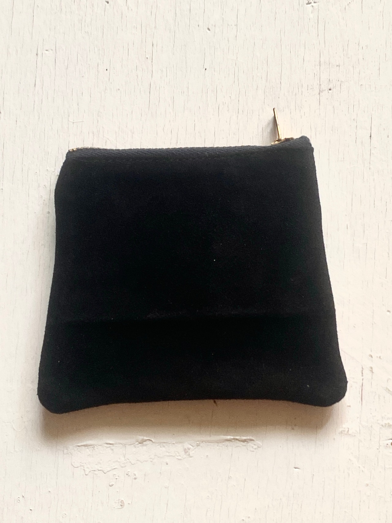 ヴィンテージのレザーと裏面スエード、USA製デッドストックファスナーのプレーンなコインケース。