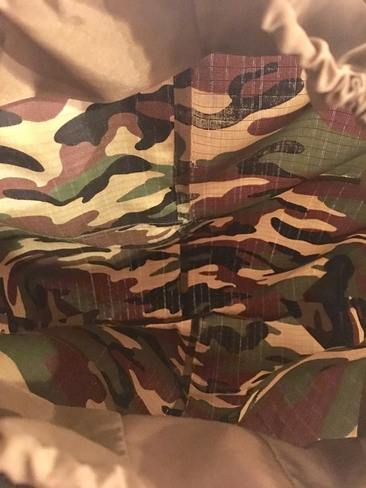 カモフラ生地は、インサイドアウトしているため、ミリタリー色が柔らかい印象の仕上がりに。