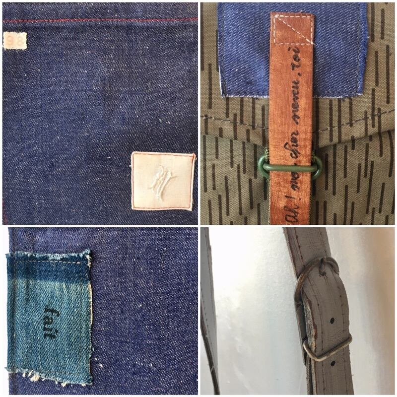 状態はヴィンテージアイテムを解体したファブリックで再構築されています部分につきましては経年のダメージはそれなりにあります。シミ、汚れ、針穴などもデザインの一部と捉えたお品になります。