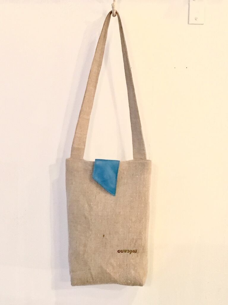 フラップ部分のブルーがリネン生地に良く映え、とても良いアクセントになっています。