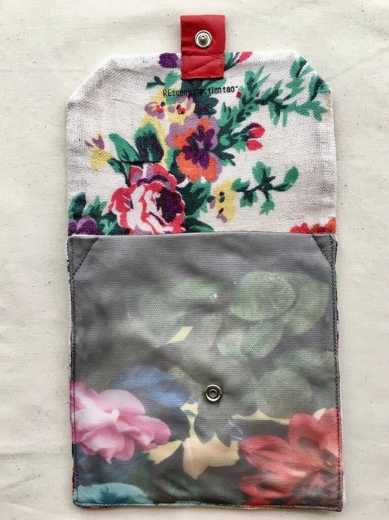 オーガンジー素材のヴィンテージワンピースを解体し、作成したポーチ。