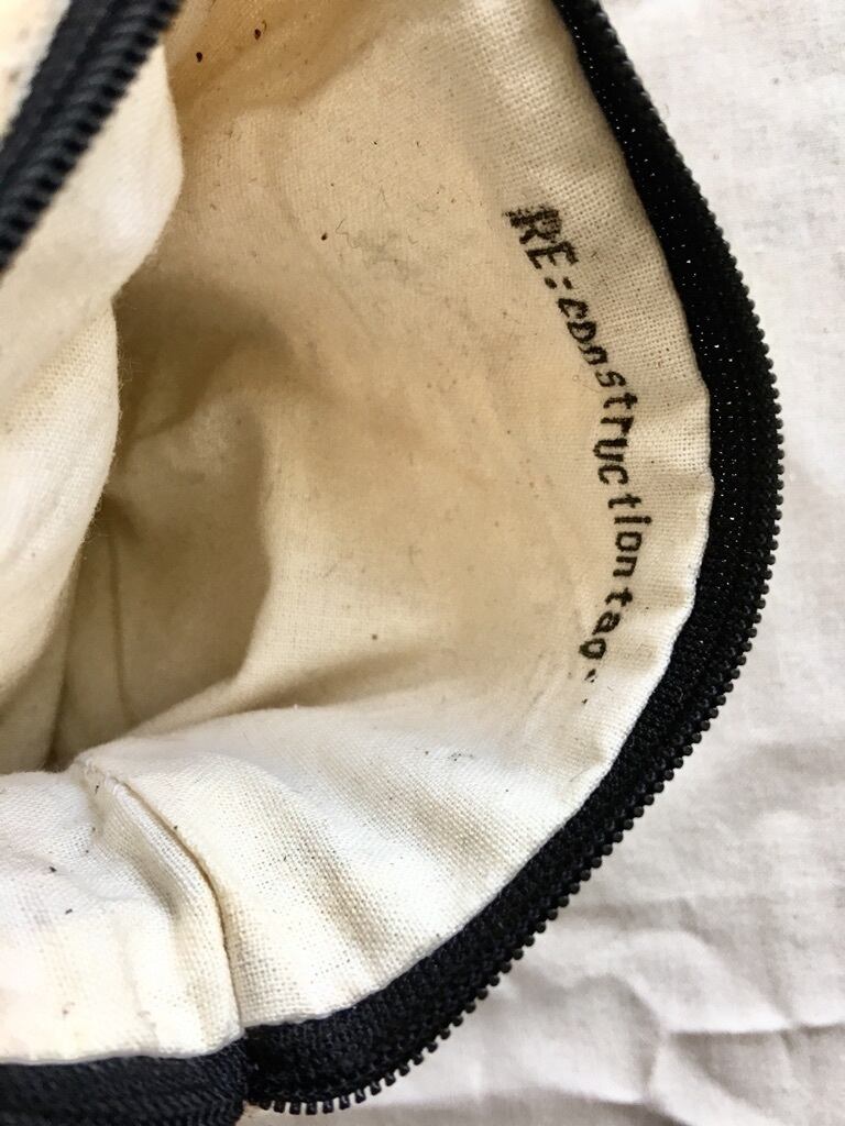 ヴィンテージのテーブルクロスリネンをベースに作成したポーチ。