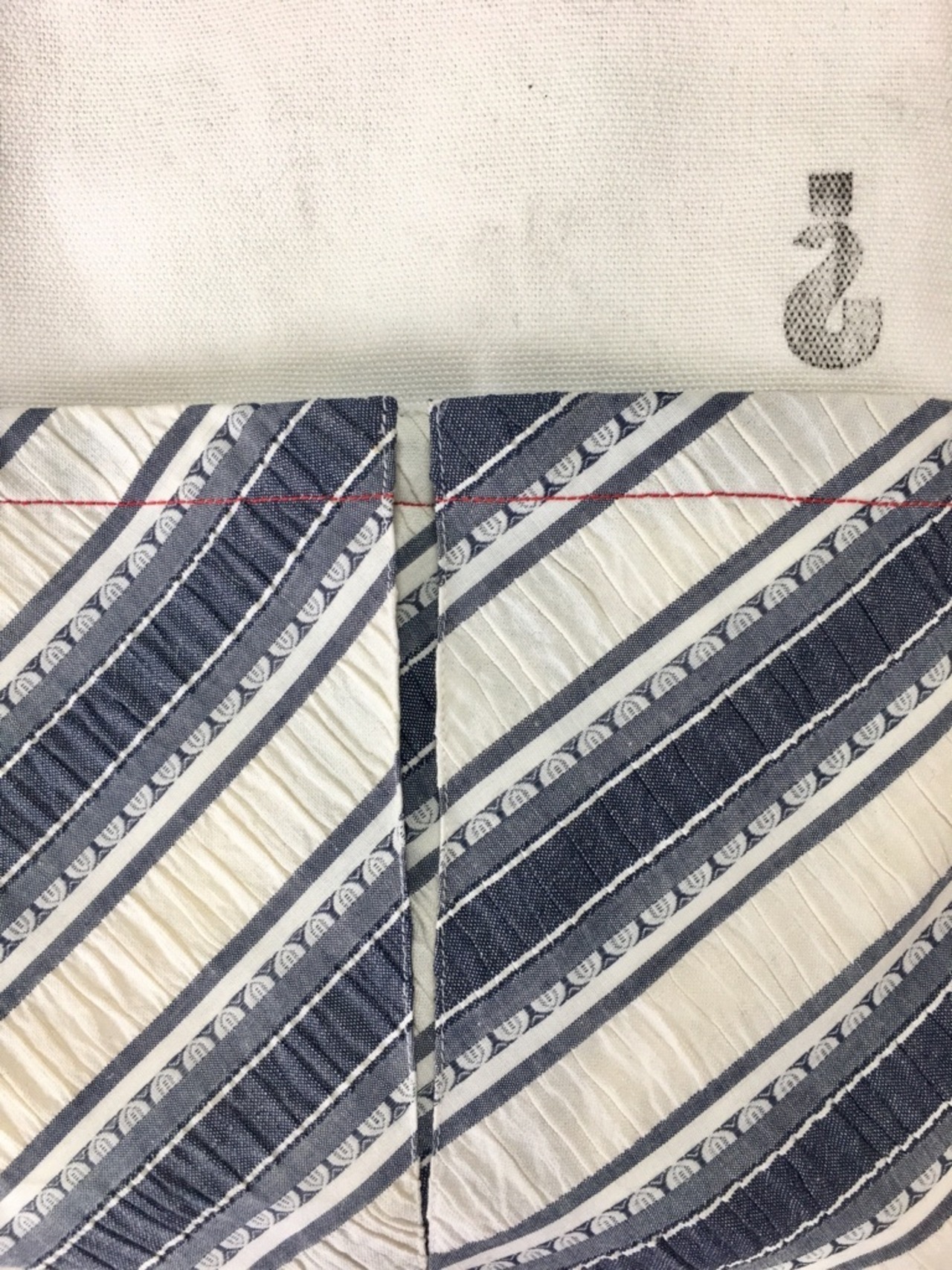 ネーイビー×白の爽やかなサッカー地に、赤のステッチが良いアクセントになっています。