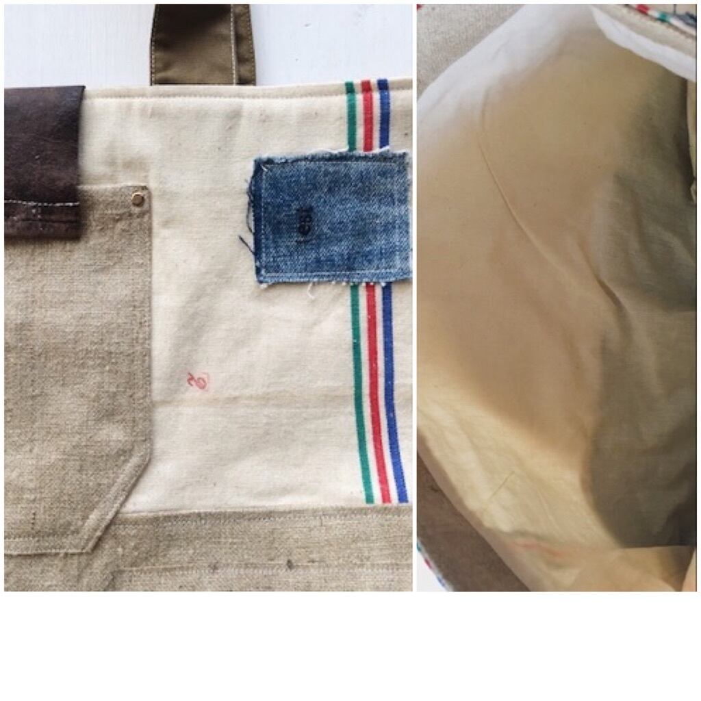 フランスヴィンテージのコットンクロスとリネンシーツをベースに作成したトート。