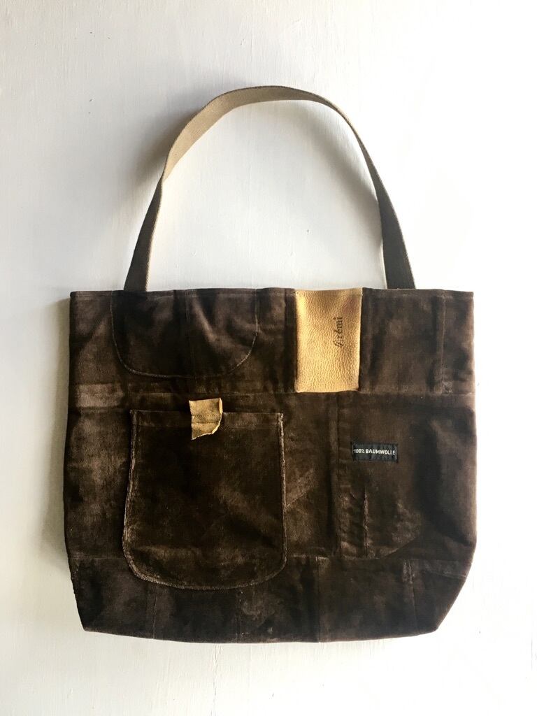 ヴィンテージドイツ製のベロアジャケットをファブリック状にし、パッチワークし作成したトートバッグ。