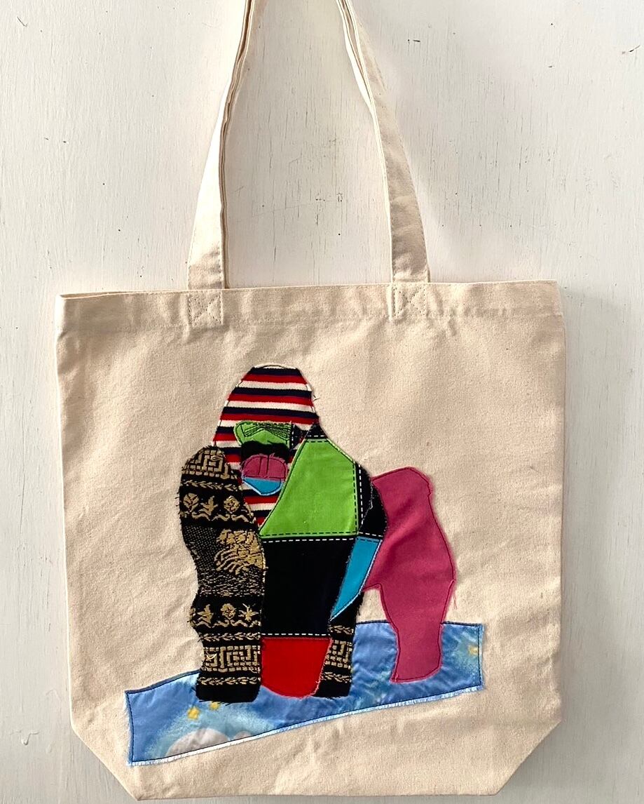 既成の生成りのトートにヴィンテージの様々なファブリックを組み合わせた動物シリーズのトートバッグ。