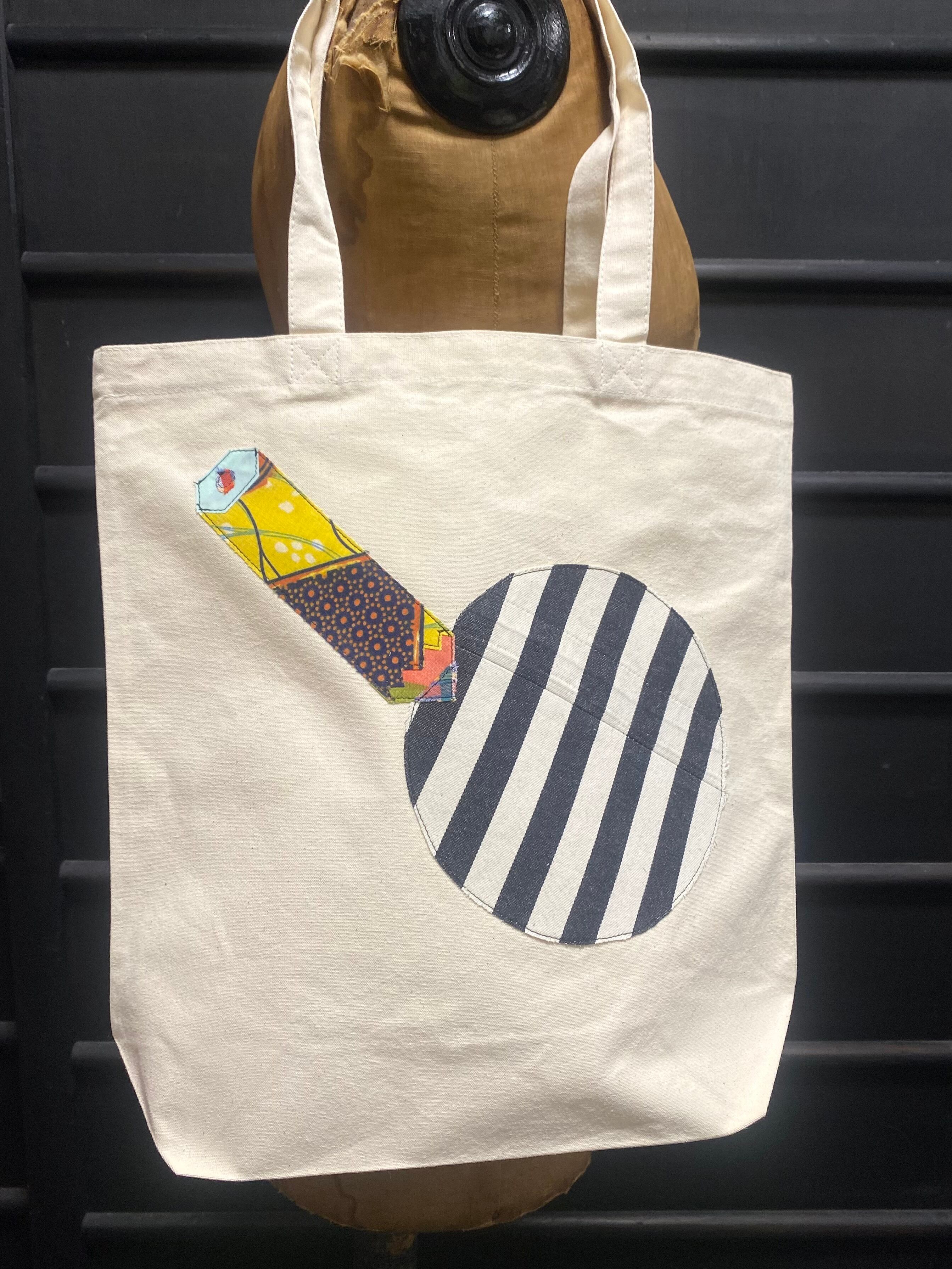 既成の生成りのトートにヴィンテージの様々なファブリックを組み合わせたドローイングシリーズのトートバッグ。