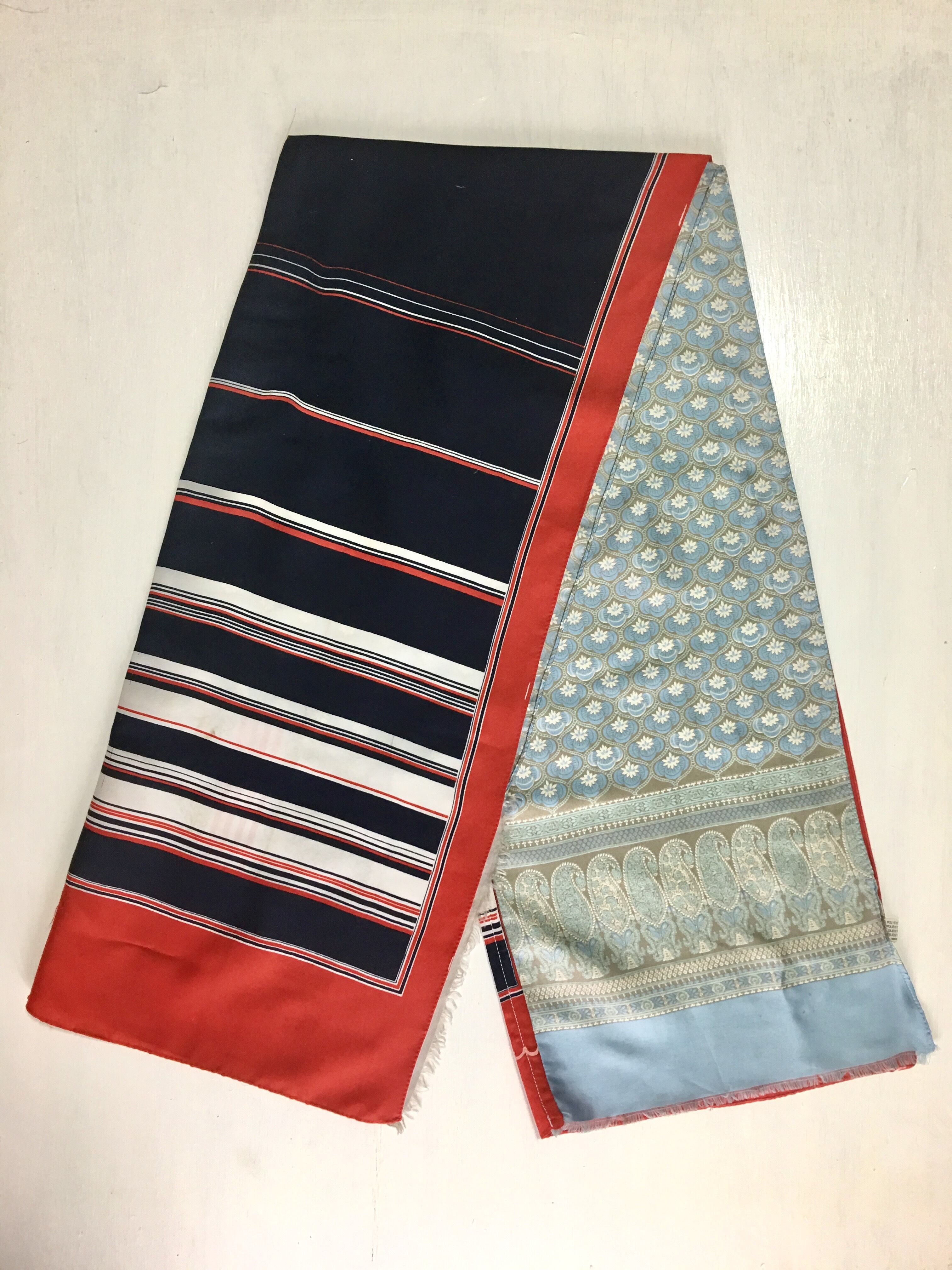 ヨーロッパメイドのヴィンテージのシルクやポリエステル等のスカーフをランダムに解体し数種を接ぎ合わせファブリック状にしたスカーフです。